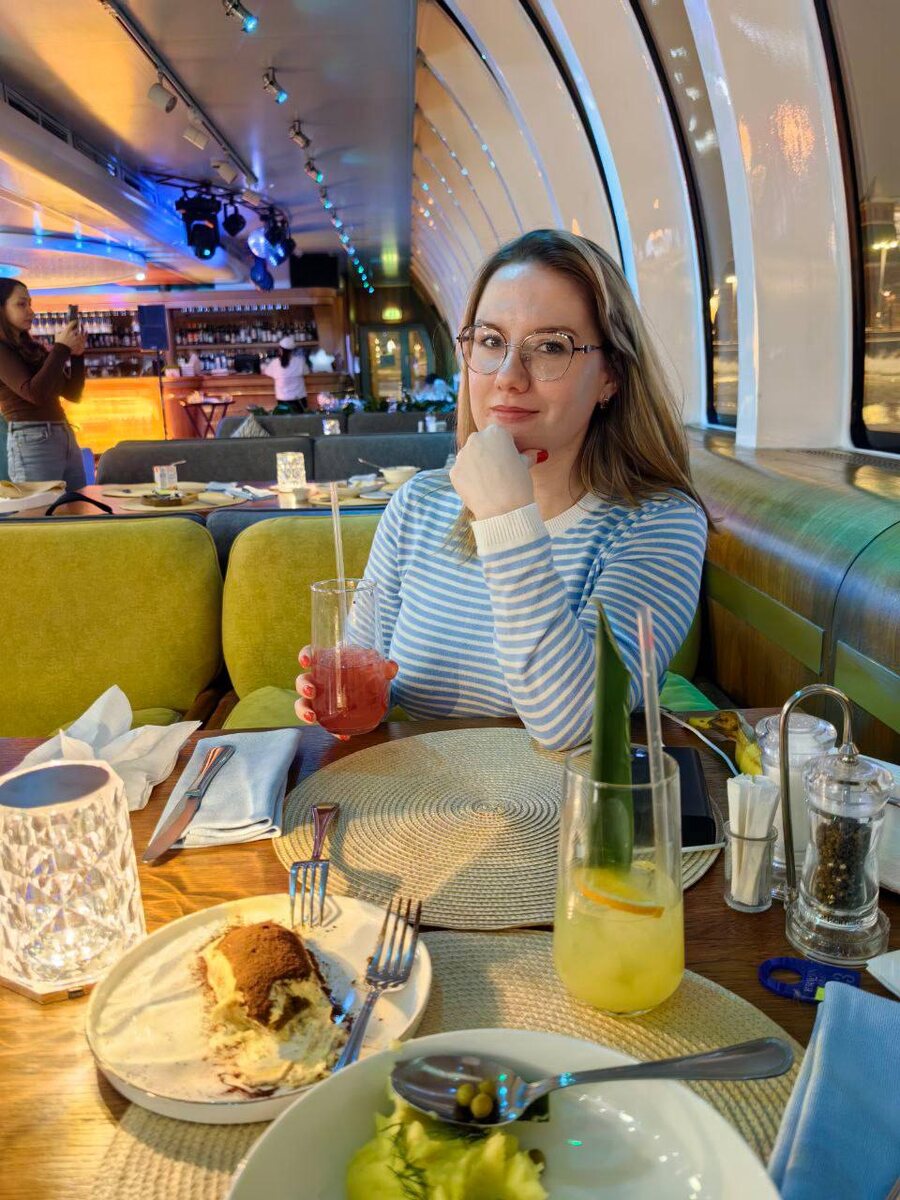 Река. Как все устроено А вот и первые отзывы со вчерашней акции. @Lilechka_1610 и @Masha_Koles попали на вечерний рейс. И делятся с нами красотой: Девочки, красота. Живая музыка. Народу мало. Ценник здесь, конечно, высокий. Но кто то чай берет, кто то больше. Мы взяли коктейли и десерт😅и Гордею покушать. Мы попали в сказку Нам тоже ооочень понравилось❤️ Народу мало, живая музыка, красота из окна, очень вкусная еда…шикарный пятничный вечер) Мы всей семьей довольны 😊 Вчера было мало людей на сеансе. Заявки на бронь столиков ресторан стал принимать у себя в MAX по номеру +7-985-441-68-44 Пускают без проблем, при входе нужно произнести код - «Провожаем зиму». Верхняя палуба закрыта, но можно выйти на нос корабля. На сегодняшнем рейсе в 15:30 будет еще бесплатная анимация и развлекательная программа для детей. Благодарим за оперативные отзывы и прекрасные фотографии 🫶