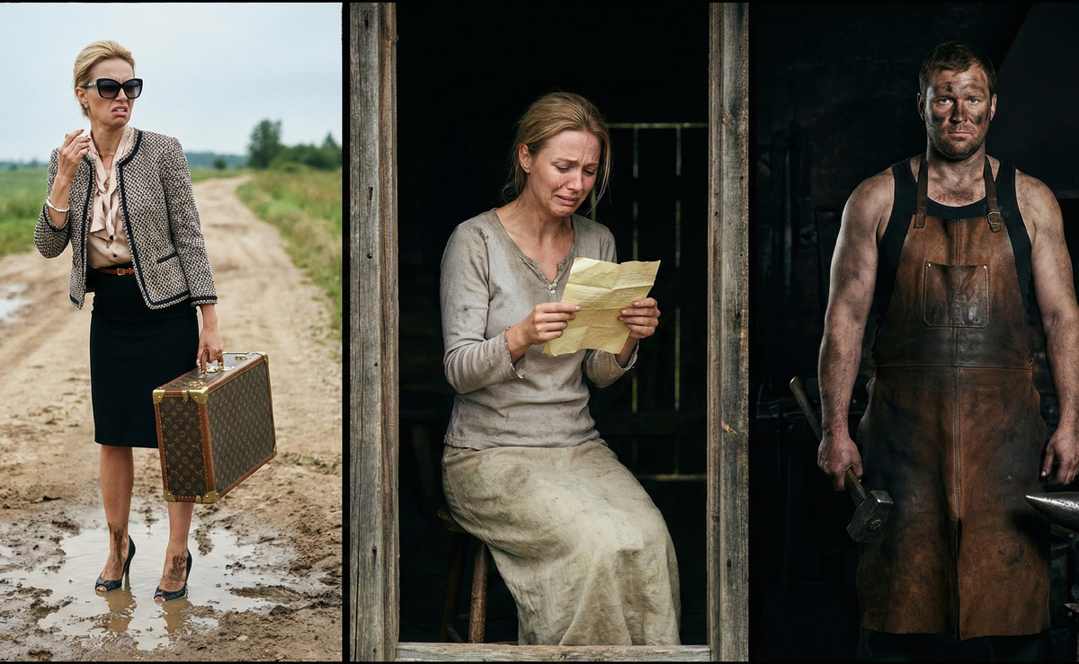 Дождь лил как из ведра. Виктория, в своих любимых светлых туфлях на высоком каблуке и тонком дизайнерском плаще, тащила по грязи тяжелые чемоданы. Слезы обиды смешивались с каплями дождя на ее щеках. Когда она наконец добралась до деревни, пейзаж не добавил ей радости. Деревня состояла из пары десятков крепких, но старых деревянных домов. Дом, который достался ей в наследство, оказался покосившейся развалюхой с заросшим двором. Внутри пахло сыростью, старым деревом и сухими травами. Никакого электрического отопления, никаких душевых кабин. Посреди комнаты возвышалась огромная, пугающая русская печь.