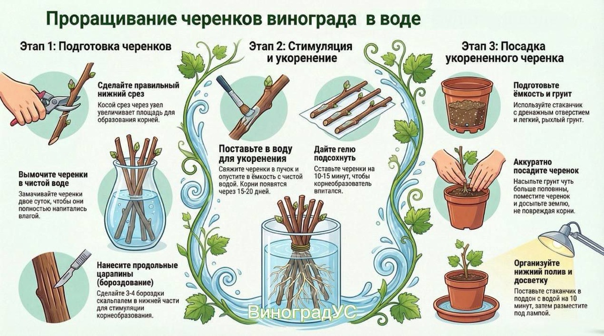 Мои черенки все в грядках завалены снегом. Возможно через неделю-две я смогу откапать их. Но для вас я напишу инструкцию. В воде Черенки помещают в ёмкость с отстоявшейся водой комнатной температуры. Нижняя часть черенка должна быть погружена в жидкость на треть. Некоторые особенности проращивания: Черенки нарезают со взрослых, здоровых материнских растений, желательно не старше 5 лет. Сначала их ставят в стимуляторы роста и корнеобразования на 6–14 часов (зависит от используемого препарата). Если на черенках есть листья, с нижней части, которая будет погружена в воду, их обрывают. Банки размещают на хорошо освещённом месте с рассеянным светом. Попадание прямых солнечных лучей может вызвать ожоги растений и избыточное испарение влаги. Воду полностью не меняют, а доливают по мере испарения. С появлением корней (обычно через месяц) черенки пересаживают в рассадные горшочки или ящики. Процедуру проводят, когда молодые корешки достигают в длину не менее 5 см. В грунте Черенки высаживают