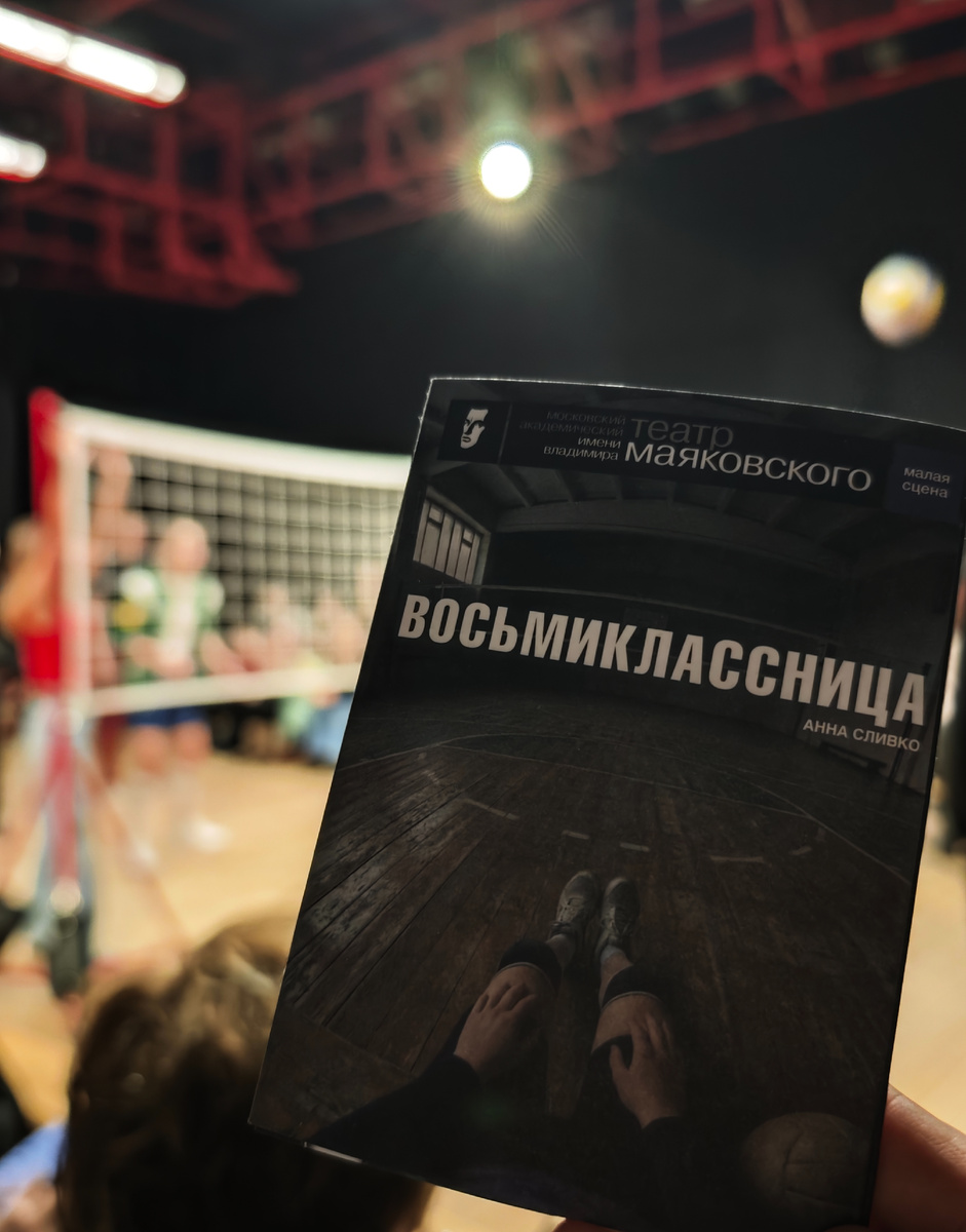 Спектакль начинается сразу, когда вы заходите в зал. На сцене сцене натянута сетка и любой зритель может до третьего звонкам поиграть в волейбол. Компания найдется. Приятный бонус, ради которого стоит прийти пораньше.