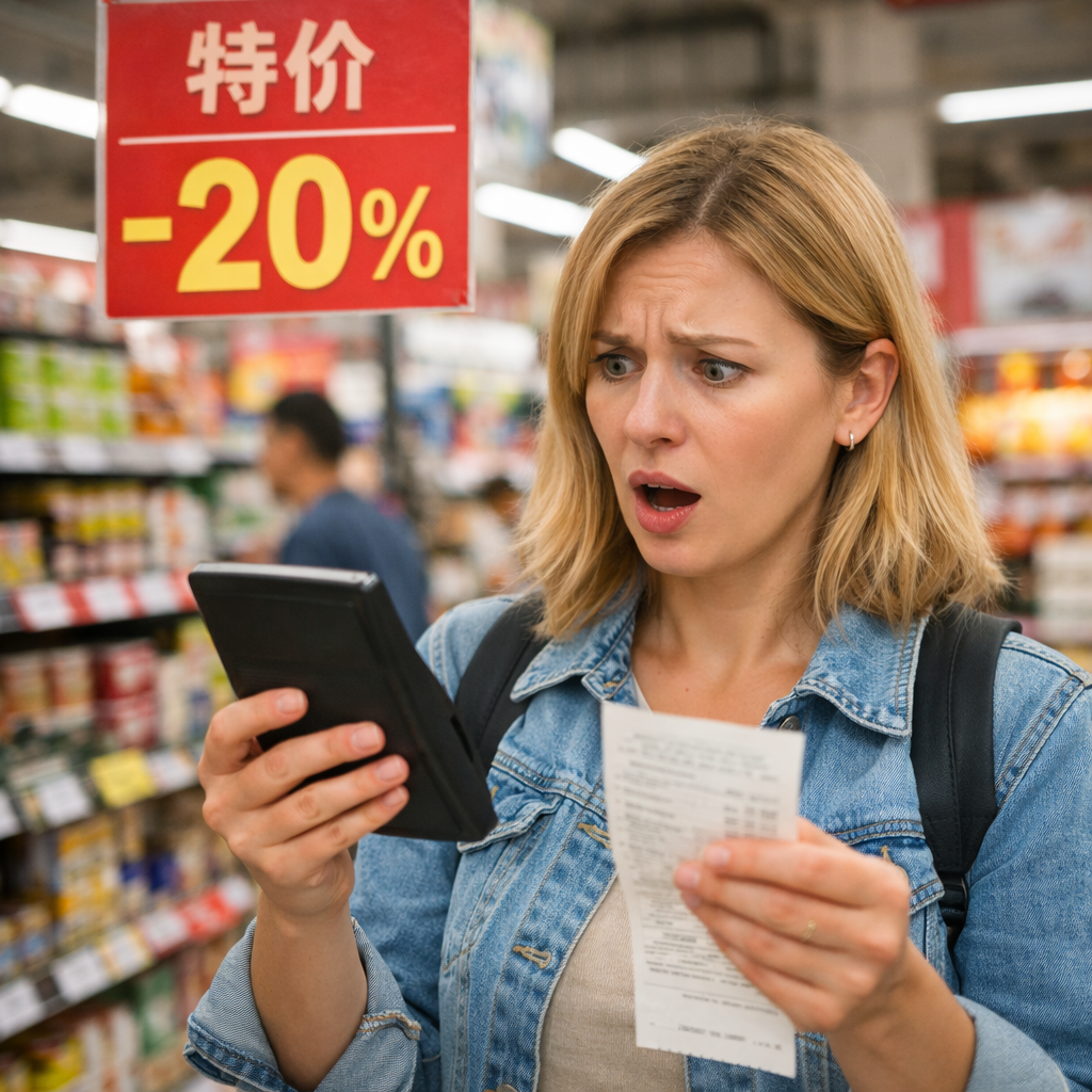 Помните мой рассказ про поездку в Китай? Так вот, там я впервые столкнулась с магией китайских скидок 🎪 Захожу в магазин, на ценнике яркими цифрами написано 20%. Я обрадовалась: "Ого, скидка 20%!" Хватаю вещь, бегу на кассу... А там сумма совсем не такая, как я насчитала 😱 Оказалось, в Китае всё наоборот! Как это работает у нас (в России/Европе):