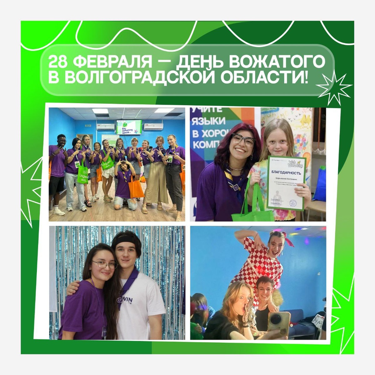 ! 28 ФЕВРАЛЯ — День вожатого в Волгоградской области. Для нас это не просто дата в календаре, а возможность сказать главные слова своей команде. Вожатые Lingwin — это удивительные люди. Они приходят к нам студентами, а уходят легендами. Они те, кто: 🫂 Встречает рассвет на зарядке и провожает закат на «свечке»; 🫂 Владеют английским не ниже уровня Intermediate; 🫂 В каждом ребёнке видят личность; 🫂 Умеют найти общий язык с 20 непохожими детьми; 🫂 Умеют быть и строгими, и справедливыми, и весёлыми; 🫂 Работают 24/7 с улыбкой до ушей; 🫂 Помогают сказать первую фразу на английском без стеснения; 🫂 Учат дружить, мечтать и творить. Кто-то думает, что вожатый — это просто аниматор. А для нас вожатый — это старший друг, наставник и проводник в мир крутого детства. Наши ребята проходят строгий отбор, изучают психологию и методику, но самое главное — они умеют слышать детей. С ПРАЗДНИКОМ, КОМАНДА! Спасибо, что дарите детям крылья 🪽🫶🏻 Ставьте ❤️, если у вас тоже был любимый вожатый!