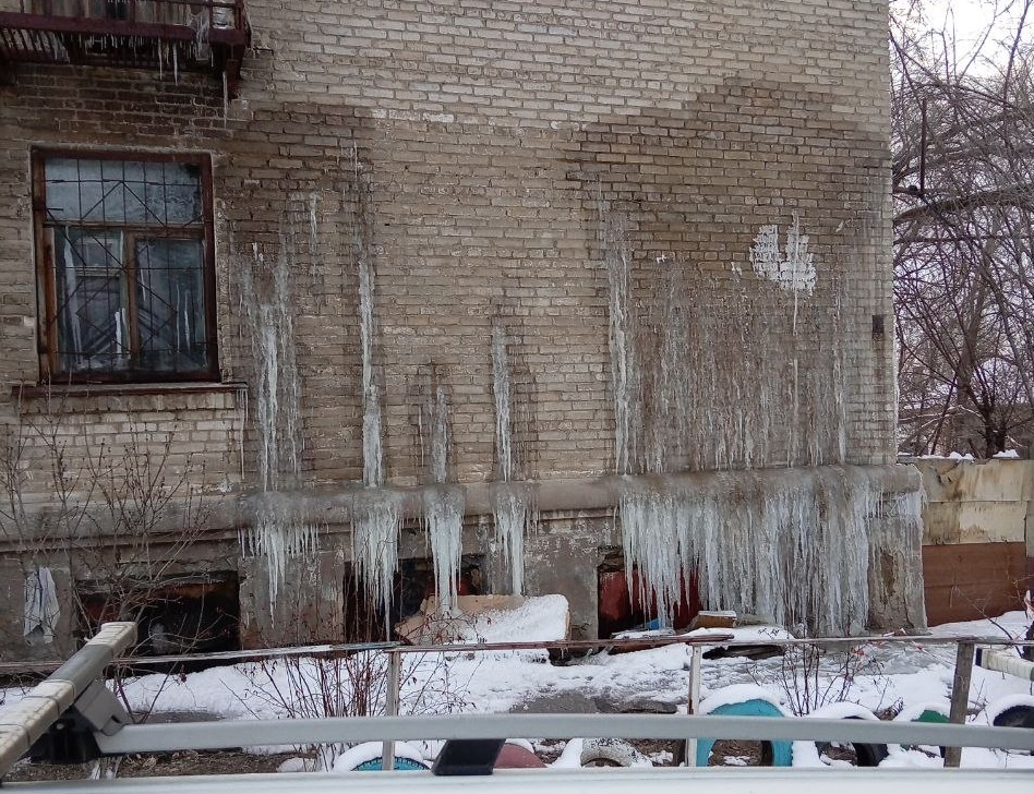 Старое общежитие, по словам жительницы Анастасии, видело за свой век все: горючие девичьи слезы, скупые мужские слезы, даже как плачут собаки. С конца декабря здесь нет воды и отопления. Но одна из стен промерзает так сильно, что будто бы плачет: - Как быть жителям в этой ситуации? Люди живут без воды и отопления, перекрыли всё. Весь первый этаж топит. Люди съехали, кто куда мог. А у кого нет возможности, сидит тут и выживает - одним словом. Куда не прикоснись, током бьёт. Нас убьет это общежитие! С 2018 года жилье находилось в статусе аварийного, а к 2022-му здание приговорили к сносу. Но в 2026-м году в нем продолжают жить люди. - Но как плачет общежитие - это даже глава СК РФ Бастрыкин вряд ли встречал за свою кипучую деятельность во главе комитета. УК отказалась от дома. Даже дом рыдать начал, не дождавшись действий со стороны администрации. Почему же «плачет» не расселяемый дом? Люди запечатлели на фасаде здания огромные ледяные слезы. Причина кроется в подвале, уверены здесь: - П