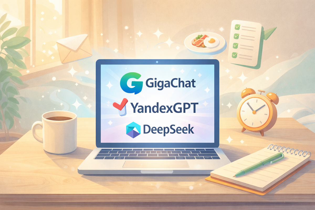 Всё началось со спора. Подруга сказала: «Да ну, эти ваши нейросети только картинки рисуют». Я решила доказать обратное самым наглядным способом – отдать ИИ управление целым днём. Меню, письма, список дел, ответ на неловкое сообщение от бывшего коллеги. Всё. Это был вторник. Обычный, немного суетливый вторник. И вот что из этого вышло. 07:15. Кофе ещё не готов, а я уже открываю GigaChat. Первый запрос дня: Составь мне план на рабочий вторник. У меня три встречи (в 10:00, 14:00 и 17:00), куча недоделанных писем и дедлайн по отчёту в пятницу. Я сова, до 9 утра соображаю плохо. Распредели задачи так, чтобы самое сложное было после обеда. Пиши по-человечески, без пунктов вроде "оптимизируйте продуктивность". Получила – план на три страницы с блоками по времени, буфером на непредвиденное и напоминанием выпить воды между встречами. Последнее меня тронуло. Завтрак - отдельная история. Я написала, что в холодильнике есть яйца, помидоры, сыр и кусок вчерашней пасты. Попросила придумать что-то съ