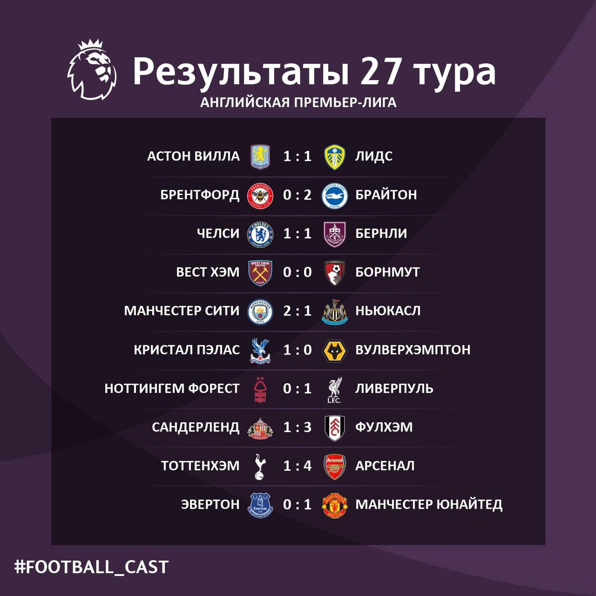 Мерсисайдцы прервали серию неудач против «Ноттингем Форест», добыв первую гостевую победу над «лесниками» с 2024 года. Несмотря на антирекорд Салаха (9 матчей без голов) и блеклую игру, команду Слота вновь выручил класс: на 90-й минуте связка Собослаи – Экитике организовала гол для Мак Аллистера. «Ливерпуль» подтвердил в этом матче фразеологизм «успеть в последний вагон». «Астон Вилла» и «Челси» синхронно оступились: команда Эмери едва спаслась в матче с «Лидсом», а лондонцы потеряли очки с аутсайдером. Осечками конкурентов воспользовались «МЮ» и «Ливерпуль». Теперь дистанция между 3-м и 6-м местами сократилась до 6 очков. Если Каррик удержит темп, а «Виллу» продолжит штормить, то бирмингемцы рискуют выпасть из зоны ЛЧ. «Арсенал» деклассировал «Тоттенхэм» – 4:1. Героем встречи стал Виктор Дьокереш, оформивший 2 гола за игру. Пока «канониры» возвращаются в чемпионскую гонку, «шпоры» погружаются в хаос: у команды Тудора пока что 0 побед в 2026 году. Кризис усугубляет разлад в раздевалке