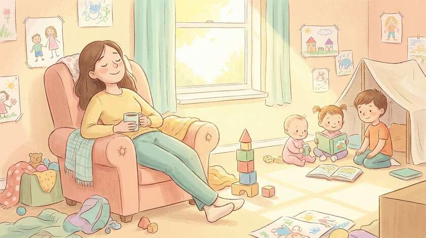 Забудь про "мне нужен целый день для себя". Его не будет (пока что). Вместо этого – микро-перерывы: 10-15 минут полной тишины. Без телефона. Без "пока дети смотрят мультик, я быстро помою посуду". Нет. Десять минут – только для тебя.
