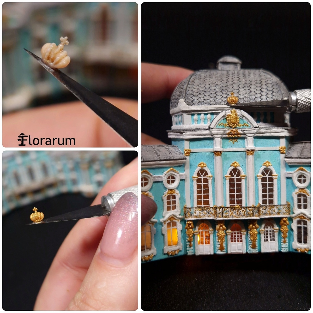 Здесь на самом деле все просто, только муторно. Вся лепнина фасада - полимерная самозастывайка, только атланты и корона из запекаемой, а колонны под атлантами из экструдированного пенополистирола (далее галерея, можно листать) В предыдущих статьях был балкон и окна с дверями. Остался фундамент, ему отдельную статью посвящать не хочется. Если что, его создание было в этом коротком ролике Дворец готов. Три месяца работы над ним можно увидеть в горизонтальном 13-минутном видео на моем канале, а больше моих работ можно увидеть в группе VK