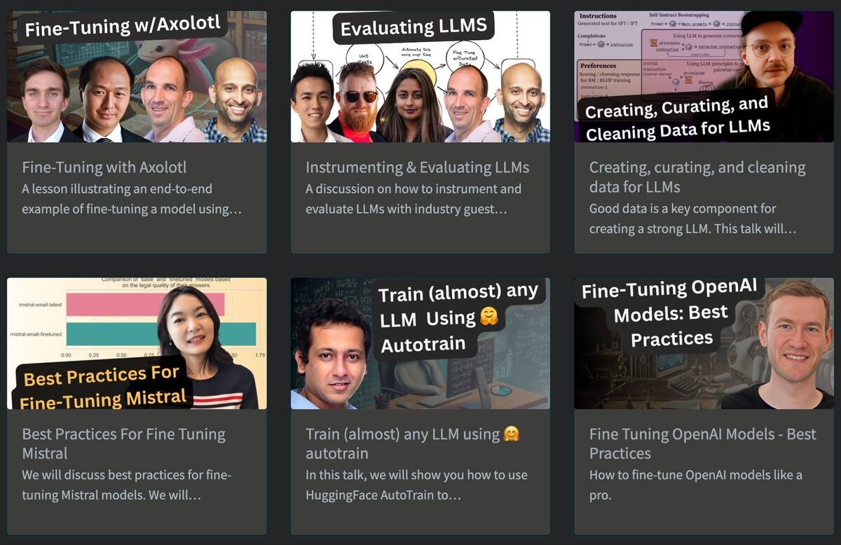⚡️ На сайте Parlance выложили лекции по самым горячим темам: промпт-инжиниринг, файнтюнинг, RAG, разработка приложений и оценка моделей (Evals). Если эти слова звучат как заклинания — вам точно сюда. Что внутри: 🔜 Видеолекции от инженеров, которые реально строят современные LLM. 🔜 К каждому уроку — текстовое саммари, презентации, код и ссылки. 🔜 Разборы, когда файнтюнить стоит, а когда нет, и как это делать правильно. Всё бесплатно и с фокусом на практику. Идеально, чтобы прокачаться в теме и понять, как устроена работа с большими языковыми моделями изнутри. Забираем: parlance-labs.com/education/ 🧠 🤖 Ботоферма в деле!