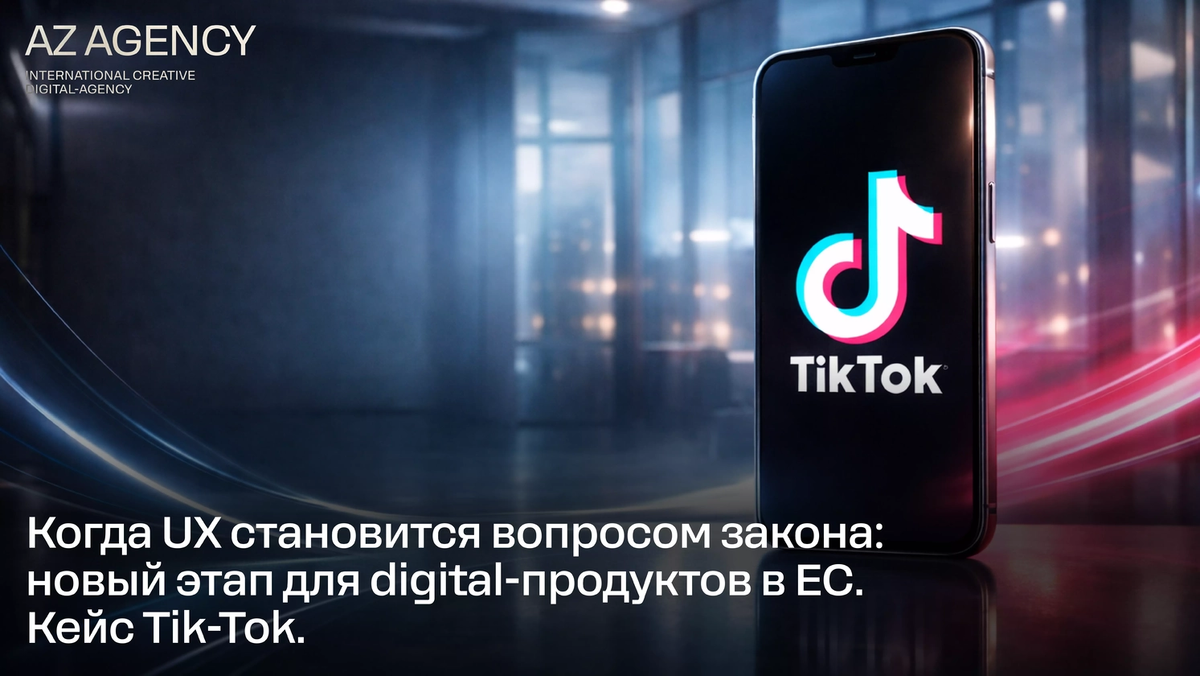 Всем привет! Меня зовут Настя, я фаундер международного digital-агентства AZ Agency. Мы работаем с digital-продуктами и брендами, которые существуют не только на экране, но и в реальном регуляторном, социальном и бизнес-контексте. В этой статье я хочу поговорить о том, как UX-дизайн перестает быть только инструментом роста и становится зоной юридической ответственности. Несколько дней назад я написала пост про TikTok в LinkedIn — о том, что в ЕС признали незаконными infinite scroll, autoplay и часть механик рекомендаций. Пост получил более 105 тысяч просмотров, 1388 лайков, 130 комментариев и 86 репостов. Такая реакция показала одно: тема «дизайн как зона регулирования» больше не абстрактная дискуссия. Это реальность для продуктовых команд, работающих на европейском рынке. TikTok оказался в центре юридического прецедента.Европейская комиссия признала, что ряд его UX-механик нарушают положения Digital Services Act. Речь идет о: Ключевой аргумент регулятора: эти элементы формируют поведе
