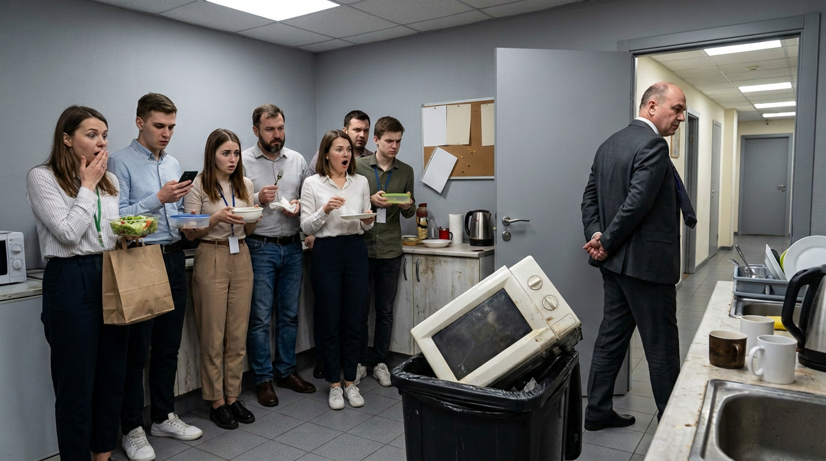 Я стояла с контейнером в руках и смотрела, как Виктор Сергеевич – наш новый начальник – выдёргивает шнур из розетки. Три года я работала в этом отделе. Три года мы грели обеды в этой микроволновке. И вот пришёл человек, который за пять минут решил, что имеет право менять нашу жизнь.