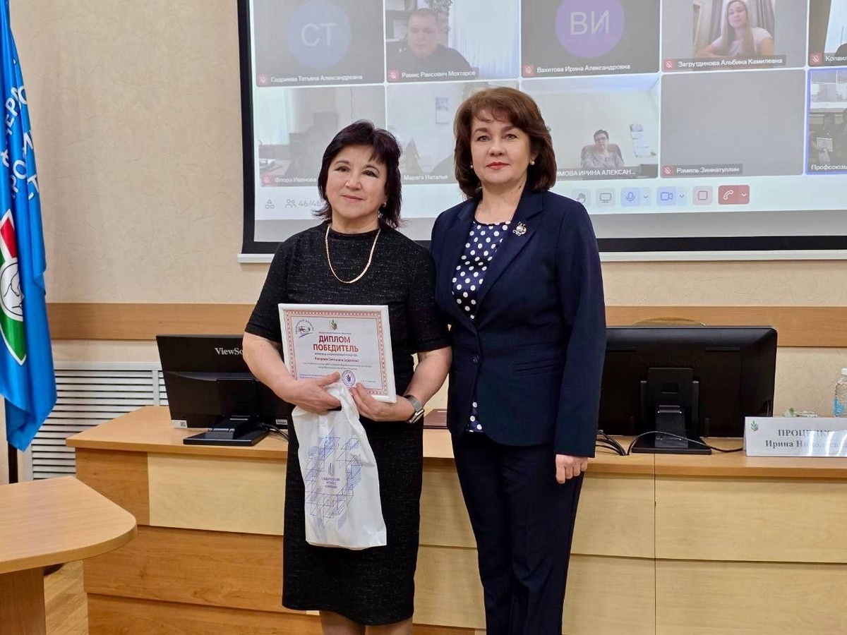 Во Дворце труда г.Казани состоялось награждение победителей и призёров Всероссийского конкурса "Профсоюзный репортер", проводимого Общероссийским Профсоюзом образования. В числе награжденных - учитель СОШ N 2, активный член профсоюза Светлана Петрова. Она стала победителем в номинации "К 80-летию Победы в Великой Отечественной войне". Диплом победителя вручила председатель Татарстанской Республиканской организации Общероссийского Профсоюза образования Ирина Проценко.