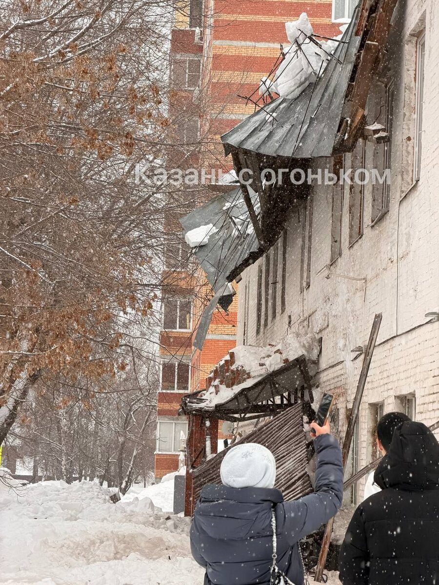 В Казани под тяжестью снега обрушилась крыша дома на Товарищеской, 27А, пишет телеграм-канал «Казань с огоньком».