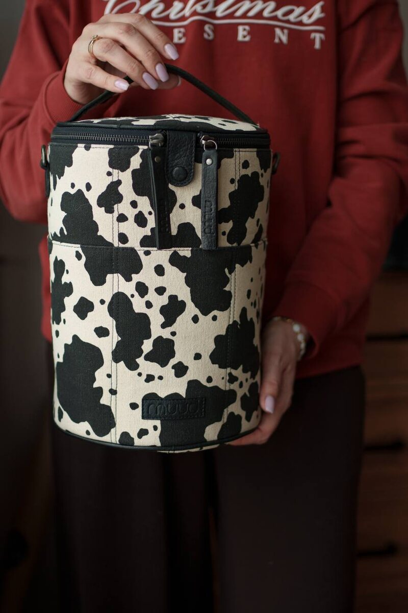 Muud нас радует линейкой Canvas с расцветкой Cow print. Всё таже любимая сумка органайзер Saturn XL, но в новом прочтении. Фурнитура выполнена из натуральной кожи, основной материал укрепленный текстиль. Вместительный размер сумки для ваших вязальных проектов. Удобно передвигаться с ней в руке или носить через плечо. Внутри и снаружи есть множество кармашков для ваших спиц, аксессуаров и работы. Высота 28см Диаметр 21см Познакомиться с сумкой можно в нашей студии на Авиамоторная,19 и на сайте https://6wool.ru/catalog/aksessuary/sumka-organayzer-proektnaya-canvas-saturn-xl/