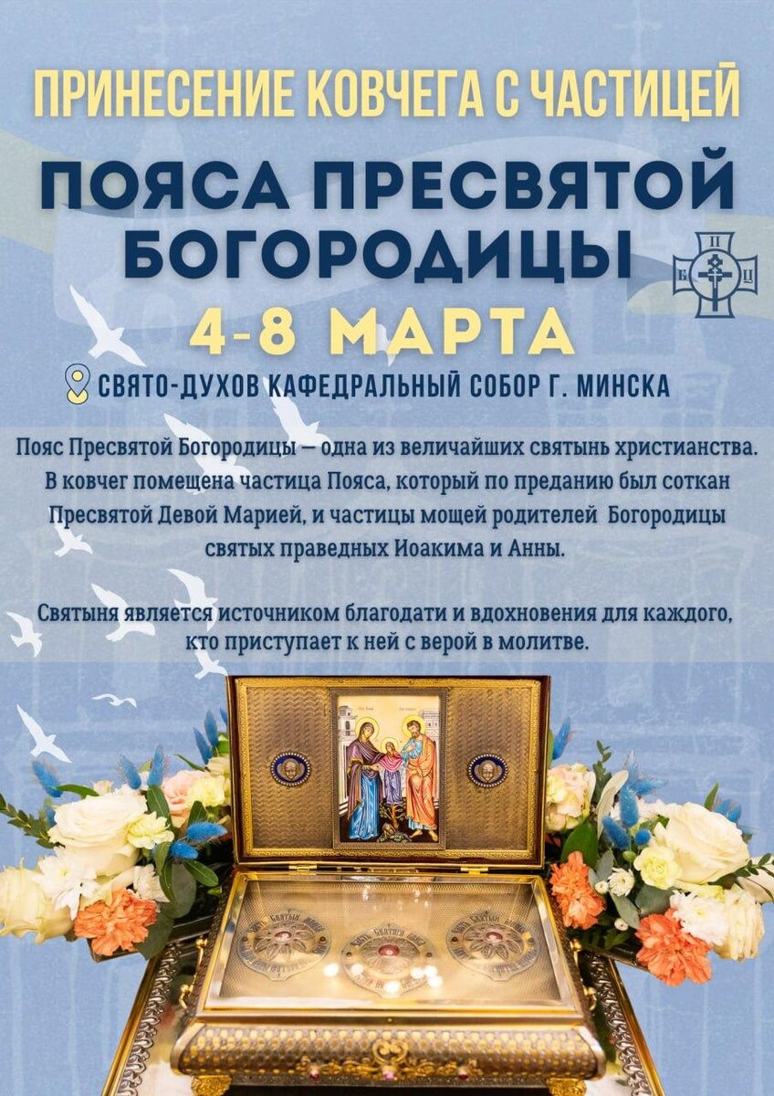 ⛪️ Частица Пояса Пресвятой Богородицы 4 марта прибудет в Минск