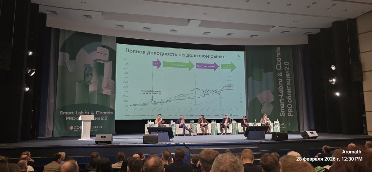 Цвет выбрали теперь, как у Aromath, зелёный 🟢 По факту же - про экономику, инвестиции и жизнь. Главный герой со сцены - банкир Сергей Хотимский Совкомбанк отвечает на простые вопросы Тимофея Мартынова Smart-lab.ru, где-то там на заднем фоне пытается развлекать публику Тремасов из ЦБ. Обожаю 2 раза в год слушать Хотимского, мне достаточно ровно столько. Уже очередное спасибо за такую возможность. Банкир Хотимский: Рублю сложно падать, пока экспорт превышает импорт, нужно снижение ставки. Есть уже рецессия - неважно, у кого плюс или минус, есть большие диспропорции между секторами, есть очень тяжёлые секторы. Из дефляционной петли экономике очень сложно выбраться. Традиционно мы живем всегда в инфляционной, это вызов. Где и как можно заработать? Хотимский: Когда в газетах будет везде слово "рецессия" - первоклассные облигации это возможности, т.к. будут снижать ставку. 👉 Смотрите 📹 YouTube Aromath - месяц рассказываю о таком плюс сейчас будут новые конкретные ролики, простые и