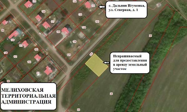 Название: Земельный участка с кадастровым номером 31:09:1701004:707, площадью 1000 кв.м. из земель населенных пунктов, с видом разрешенного использования – для индивидуального жилищного строительства, расположенного по адресу: Белгородская обл., Корочанский район, с. Дальняя Игуменка. Канал: Госземля Белгородская область Область: обл Белгородская Район: м.о. Корочанский Населенный пункт: с. Дальняя Игуменка Локация: Смотреть на карте ВРИ: Для индивидуального жилищного строительства Кадастровый номер: 31:09:1701004:707 Кадастровая стоимость: - Вид сделки: Аренда Площадь: 1000 м² Начальная цена: - руб. Дата завершения: 30.03.2026 Подробнее: ГИС ТОРГИ #госземля #земляотгосударства #земля #земельныйучасток #земельныеторги #торги #аукцион #арендаземли #аренда #белгородскаяобласть