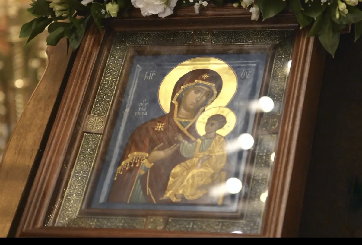 Однако на следующий день икона была обретена не в храме, а над воротами обители. Это событие повторялось несколько раз, пока Пресвятая Дева не открыла святому Гавриилу Свою волю во сне, сказав, что не желает быть хранимой иноками, а хочет быть их Хранительницей. После этого образ был поставлен над монастырскими воротами, где находится и по сей день. Поэтому святая икона называется «Портаитиссою», «Вратарницею».