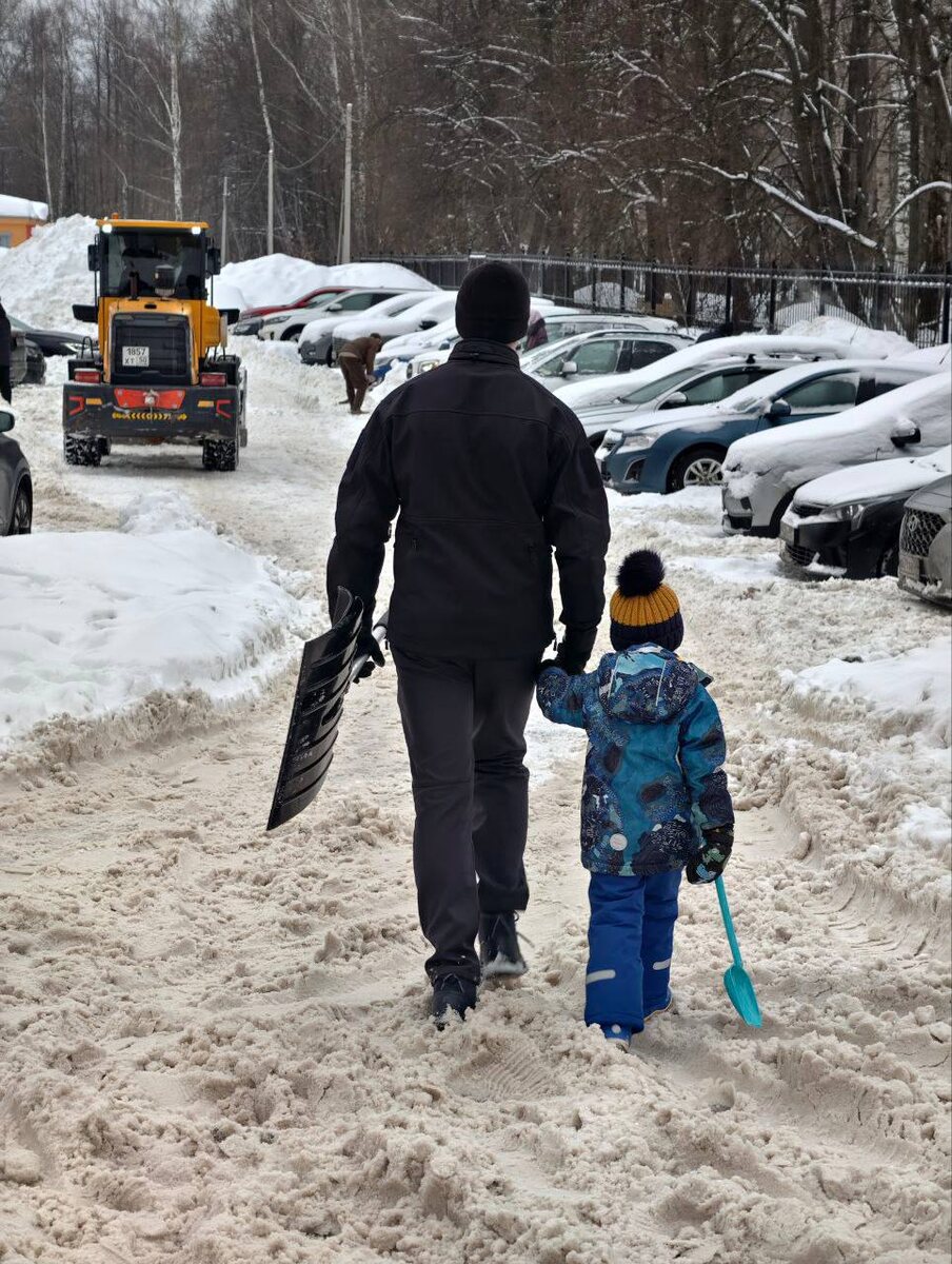 Вооружившись лопатами и заручившись поддержкой трактора, взрослые и дети вышли на борьбу со снегом. Расчистили парковки внутри комплекса, а также привели в порядок проезд вдоль парка 👏