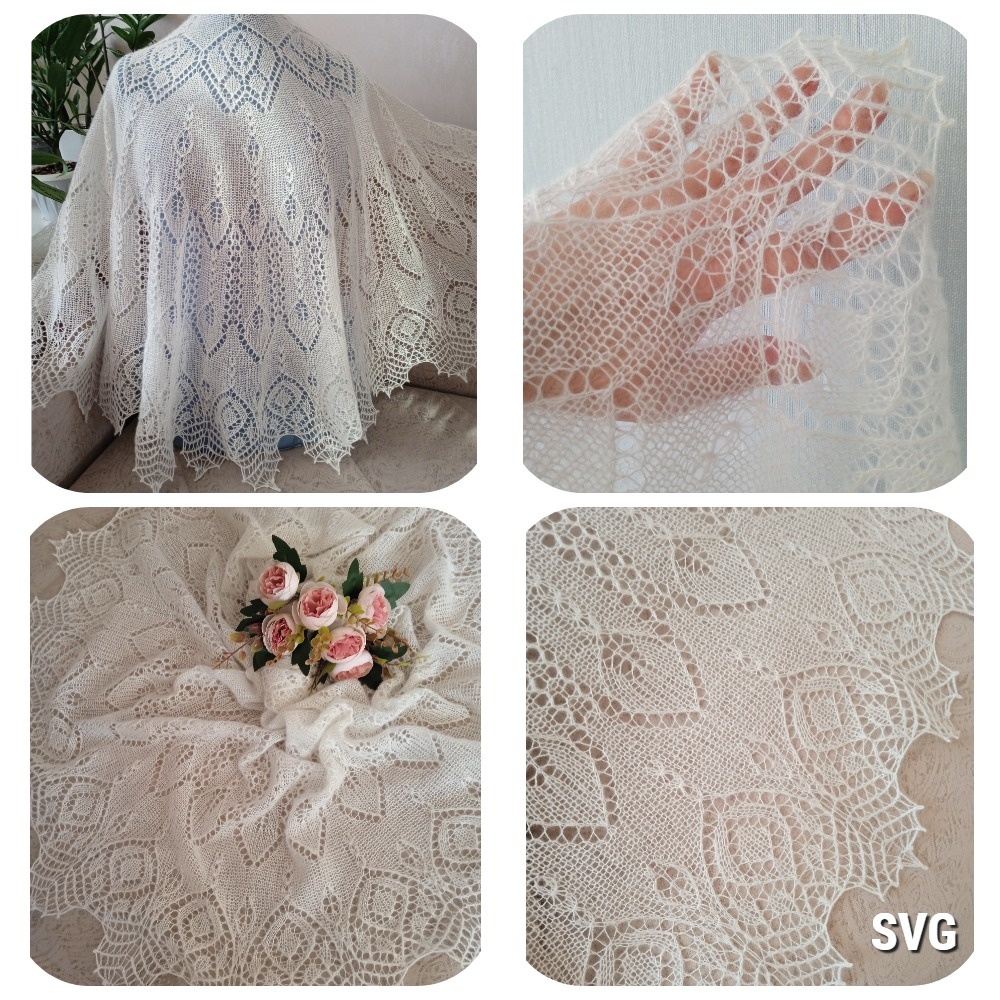 Вес 107 г Меринос с деликатным, мерцающим люрексом, который слегка поблескивает на свету, на ощупь практически не чувствуется. Лен тоже новый от Филати. Смесовка получилась очень нежная, мягкая, без намека на колкость. Сейчас вяжется новый дизайн от Аллы Борисовой, но пока не показываю Спасибо за внимание к моим работам!