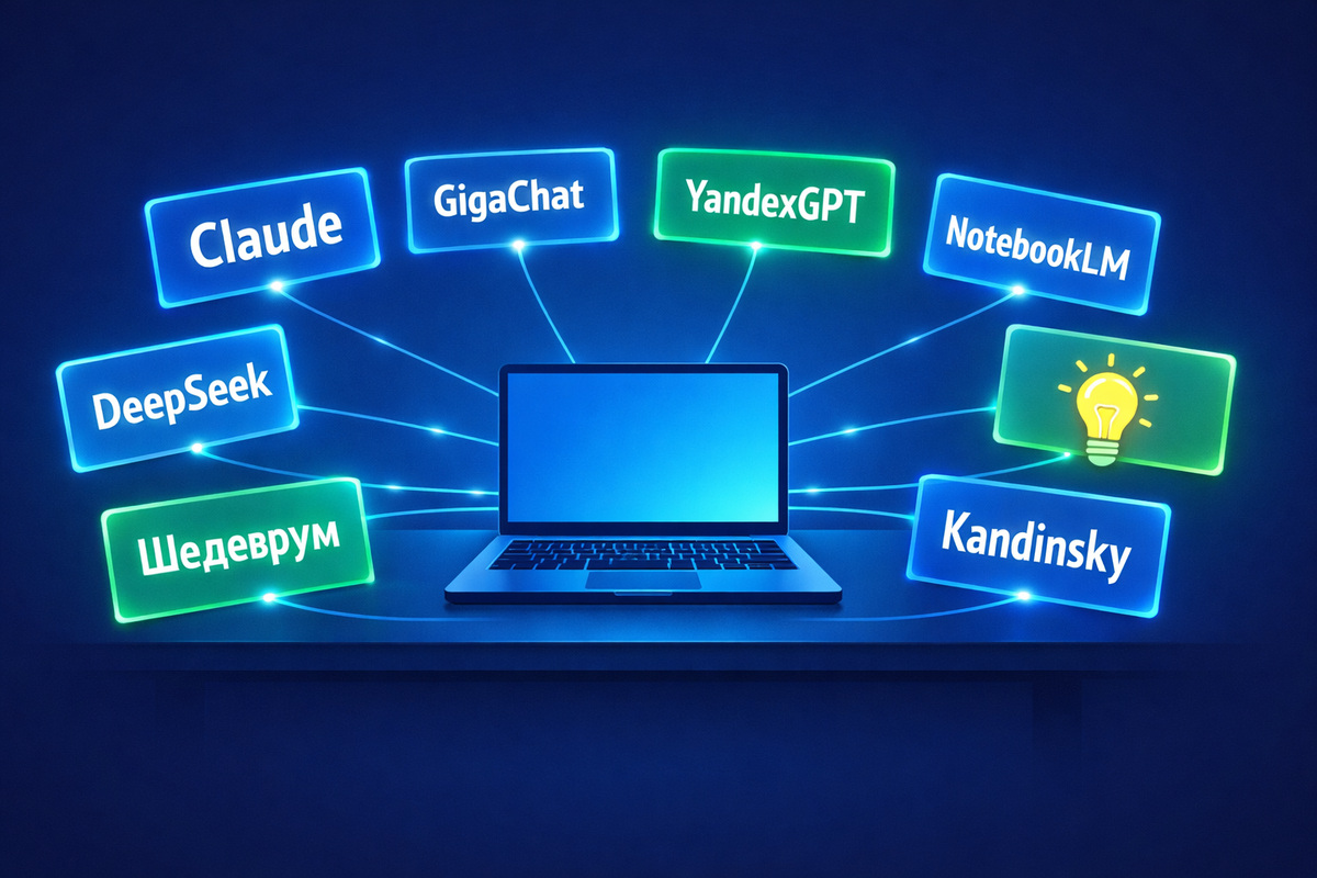Признаюсь честно: у меня был период, когда я регистрировался в новом ИИ-сервисе примерно раз в три дня. Казалось, стоит пропустить что-то – и ты отстанешь навсегда. Папка с закладками разбухла до неприличия. Подписки капали с карты. А продуктивность – нет, она не росла. Она падала, потому что я постоянно переключался, сравнивал, тестировал.