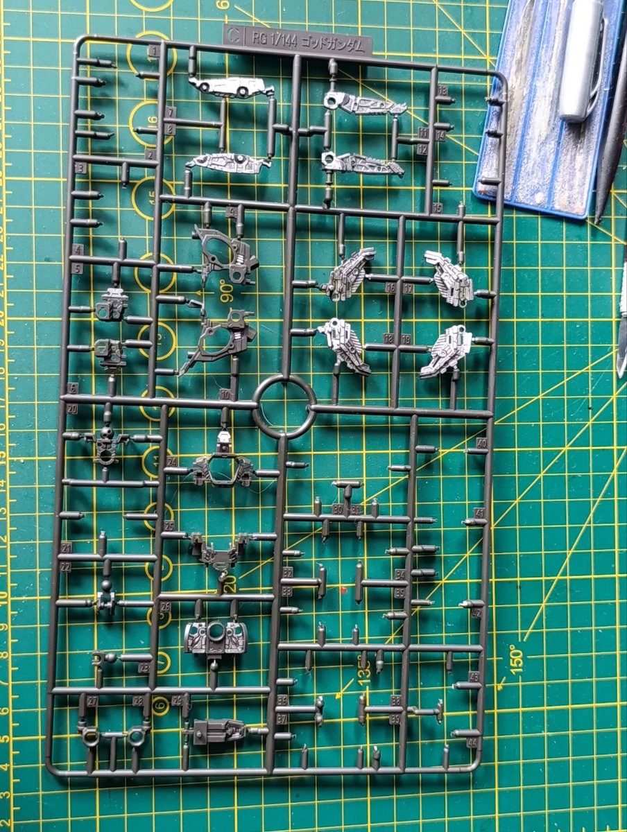По итогам сборки остаётся почти целый литник с деталями от God Gundam. Но, подозреваю, что целый фрейм грудака из этого не собрать. Надо будет куда-нить приспособить