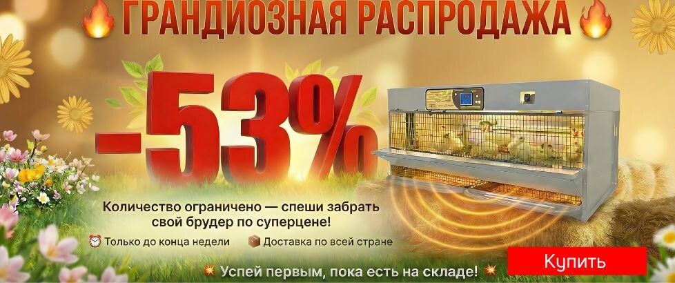 🔥 Остатки со склада брудеров со скидкой -53%! Количество ограничено — спеши забрать свой брудер по суперцене! 📦 Доставка по всей стране 💥 Успей первым, пока есть на складе! 💥 Звоните уже сейчас: 8-800-301-91-65.