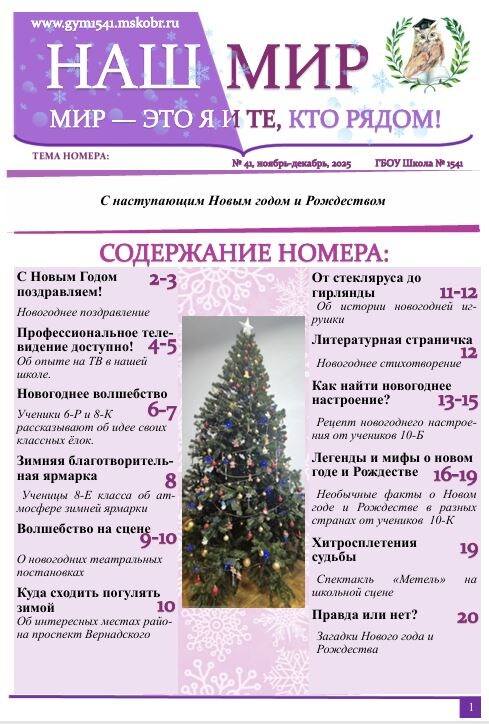 Выпуск 41 Школьная газета "Наш мир" ГБОУ Школа № 1541