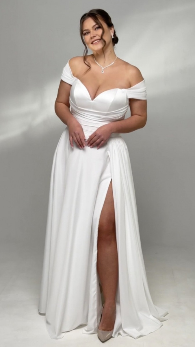 Это платье для невесты, которая ценит совершенство линий и благородную простоту. А-силуэт из атласа, продуманный до мелочей, создаёт образ королевской сдержанности и утончённой женственности. ✨ Почему оно unforgettable: • Корсет с драпировкой-качели — уникальная деталь, подчёркивающая грудь и талию, словно нежные объятия • Спущенные рукава, переходящие в линию на спине — изящный палантин, который невесомо касается плеч • Юбка-солнце с высоким разрезом и мягкой асимметричной сборкой — динамика и лёгкость в каждом шаге 💫 Ваш идеальный силуэт ждёт! Платье доступно в шоуруме в универсальном размере 50-52. Если нужен другой — возможен индивидуальный пошив по вашим меркам. #свадебноеплатье #невеста2026