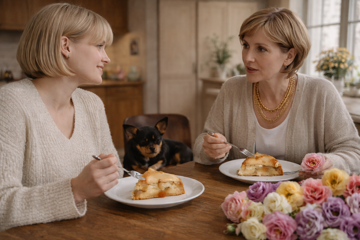 — Мне приятно, когда ты заботишься обо мне, — обращаюсь к маме. — Давай вместе съедим по кусочку шарлотки и немножечко потолстеем?
