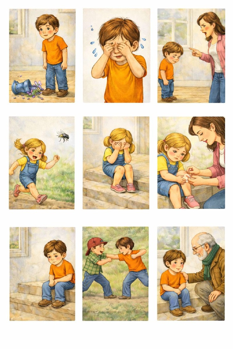 🍒🍒🍒 🍒🍒🍒🍒🍒🍒🍒🍒 Почему ребенок правильно складывает картинки, но не понимает, что герой грустит?⠀ Изображение: разные ситуации с переживаниями героев. Например, серия картинок — мальчик разбивает вазу, мама ругает, мальчик плачет. ⠀ Знакомая ситуация🍒 Ребенок блестяще раскладывает серию картинок по порядку:⠀ 1. Мальчик играл и разбил вазу.⠀ 2. Пришла мама, ругается.⠀ 3. Мальчик плачет.⠀ Проверяем понимание:⠀ 🍒Почему мальчик плачет?⠀ 🍒Потому что ваза упала и разбилась.⠀ И всё. Про маму ни слова. Связка «мама ругает 🍒 мальчику обидно/страшно 🍒 поэтому он плачет» - отсутствует.⠀ ⠀ 🍒Что произошло?⠀ Ребенок увидел и запомнил последовательность событий. Но не уловил причинно-следственные связи между эмоциями.⠀ Это важный этап в развитии мышления — переход от понимания внешних событий к пониманию внутреннего мира героев.⠀ Поговорим дальше о том, почему ребенок не понимает эмоций и скрытого смысла✅