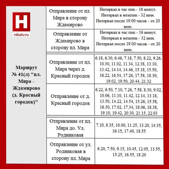 В направлении мкр.Турынино, на маршрут № 41л «пл. Мира-Ждамирово (Красный городок)» будут добавлены 3 автобуса большой вместимости. Всего на маршруте будет работать 7 автобусов с предоставлением права льготного проезда, сообщили в городской администрации. 📺 Подписывайтесь на наш канал в Максе