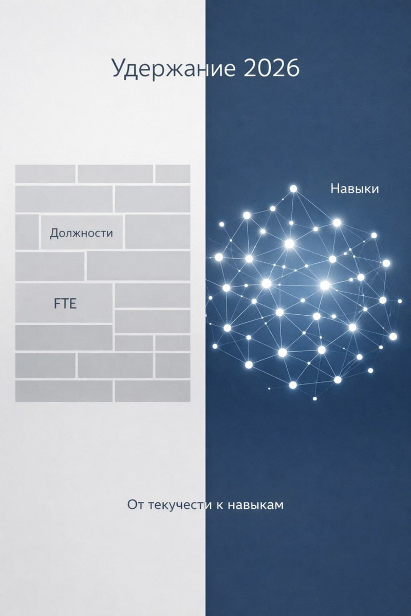Пост в продолжение линии темы удержания. Мы провели опрос, выяснили, что главный фокус удержания - фокус удержания ключевых навыков и ролей. Я немного подсмотрел западные источники, немного пофантазировал и написал архитектуру техник удержания навыков. Техника Не список «ключевых сотрудников», а карта: 🔹какие навыки критичны для бизнес-модели, 🔹где они сконцентрированы, 🔹насколько они заменяемы, 🔹сколько времени нужно на их восстановление. Это перевод удержания из персональной в системную плоскость. Что это меняет Мы удерживаем не «звезду Ивана», а: — архитектуру знаний, — плотность экспертизы, — устойчивость системы. Техника Карьерный трек = не «руководитель / эксперт», а рост набора навыков, расширение роли, переходы по проектам. Это напрямую отвечает на вопрос сотрудника: «Мои навыки здесь будут актуальны?» Это и есть практическое воплощение корреляции удержание ↔️ обучение. Техника Вместо «сколько людей в отделе» — «какая плотность критических навыков на единицу задачи». Если н
