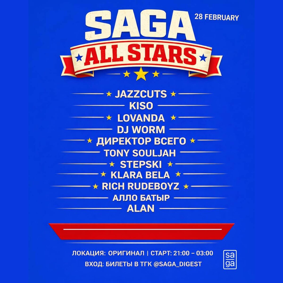 28 февраля Эта не просто тусэфа, а полноценный шоукейс в одном большом зале — музыка, люди и искусство всю ночь. • saga-базар • арт-корнер saga gallery + египетская арт-инсталляция паши вонда • мерч директор всего, кассеты, футболки notfrommoscowbratan первые часы — более камерная, сидячая атмосфера с джазом, после 23:00 плавная трансформация в ночную вечеринку. 21:00 винил сет: alan 21:45 jazzcuts — камерное джаз-выступление при участии kiso, lovanda + джем с гостями 22:30 dj worm 23:30 директор всего 00:15 lovanda 01:00 tony souljah 01:45 klara bela 02:30 rich rudeboyz x stepski 03:15 алло батыр 🎫 Билеты 📆 28 февраля, в 21:00 📍 Оригинал, Москва, ул. Земляной Вал, 9А
