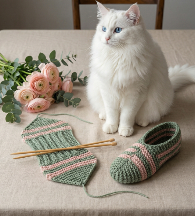 Каждый вязальщик знает: уют начинается с… тёплых тапочек! Причём чтобы испытать радость от нового проекта, не обязательно вязать на пяти спицах или часами “танцевать” с мыслями о ложных пятках. Давайте вместе свяжем невероятно простые, но стильные домашние тапочки на двух спицах — подойдут даже тем, кто только начинает и путает лицевую с изнаночной 😄 Важный бонус: минимум времени, максимум уюта, проверено на себе! Совет: Берите сразу две клубочки — и нитка сама вас немножко порадует. Да, в две нити полотно будет плотнее, теплее и “теплый пол” дома больше не нужен 😂 Продолжаем так, в каждом втором ряду делаем прибавки, пока на спицах не окажется 17 петель. Теперь беру основной цвет: Лайфхак: Не забывайте иногда потянуть вязание — полотно должно “отзываться”, а не закручиваться спиралью. А вязать под сериал — двойное удовольствие! 😄 Опять 16 рядов лицевой гладью (все ряды лицевые), не забываем — цвета чередуем каждые 4 ряда.