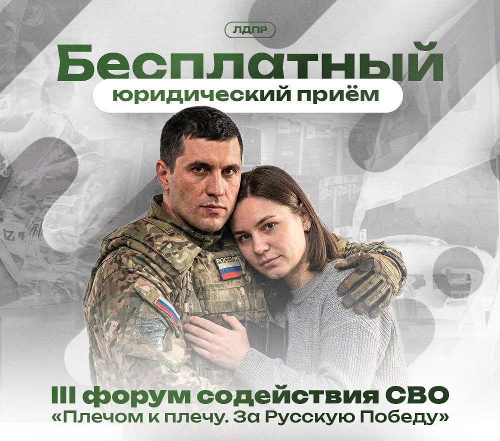 28 февраля в рамках III форума содействия СВО «Плечом к плечу. За Русскую Победу» ЛДПР проведёт бесплатный юридический приём для жителей Брянской области. Отвечу на вопросы, от ЛДПР квалифицированные юристы. С чем можно обратиться: 🔵соцподдержка и выплаты участникам СВО и членам их семей 🔵земельные отношения и жильё для участников спецоперации и их семей 🔵медицинское обеспечение и реабилитация бойцов СВО 🔵трудовые права и образование участников спецоперации и членов их семей 🔵правовая защита бойцов СВО и их близких 🔵иные вопросы Уже выехал в Брянскую область. ЛДПР поможет — вы не одни!