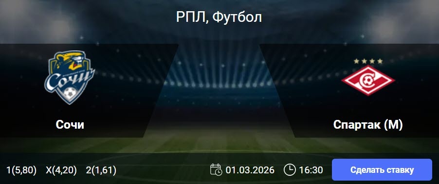 ) Статистика Сочи: Матчи с участием сочинцев часто получаются результативными: тотал больше (2.5) пробивался в 6 из 8 последних туров. Фактор своего поля не помогает: дома команда проиграла 5 из 7 предыдущих встреч (1 победа, 1 ничья). Игры проходят без центра поля: голы в обоих таймах фиксировались в 6 из 8 последних матчей чемпионата. Статистика Спартака: В гостях москвичи чувствуют себя неуютно: серия без побед на чужих полях достигла 4 матчей (1 ничья, 3 поражения). Оборона на выезде регулярно дает сбои: «Спартак» пропускает в 5 гостевых встречах подряд. Атака пока не работает на полную мощь: в 6 из 7 последних игр РПЛ команда забивала не более одного мяча. 🎯 Тотал Спартака больше (1,5) 🎲 кф (1,73) 🎯 ТБ (2,5) 🎲 кф (1,90) 🎯 П2 и ТБ (2,5) 🎲 кф (2,35) 👉 СДЕЛАТЬ СТАВКУ 🎁 ФРИБЕТ WINLINE - 3000₽ (промокод: BETWIN) 👉 СМОТРЕТЬ ПРОГНОЗ
