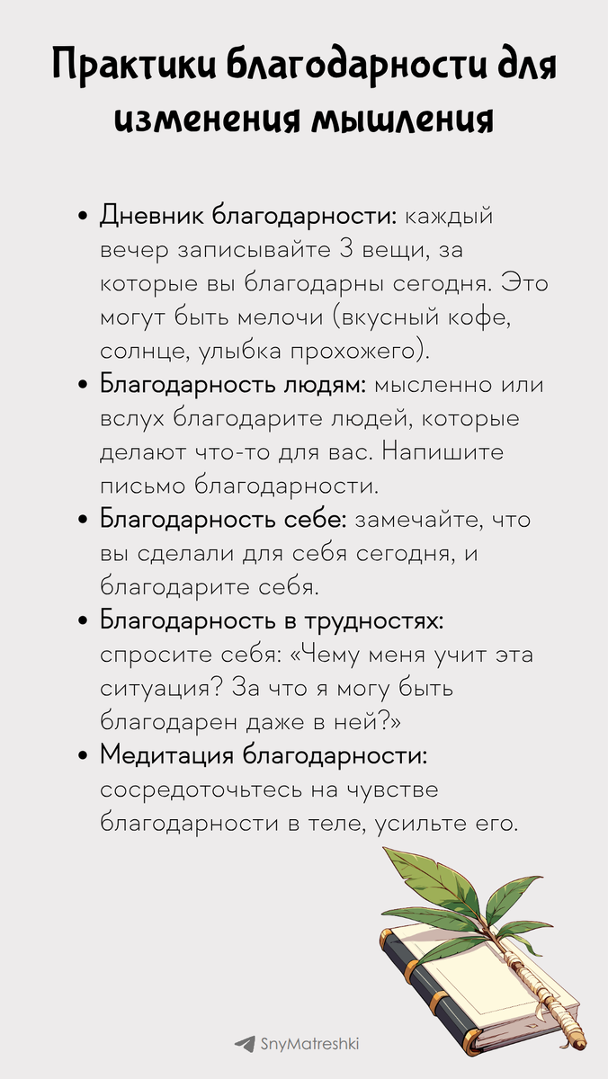 Мозг эволюционно настроен замечать угрозы и негатив (негативное искажение). Практика благодарности переучивает его замечать хорошее, меняя химию и восприятие жизни. Регулярная практика благодарности через 21 день начинает менять нейронные связи. Мир не становится другим, но ваши глаза начинают замечать его дары. Поддержать автора Александра Бóгдан,