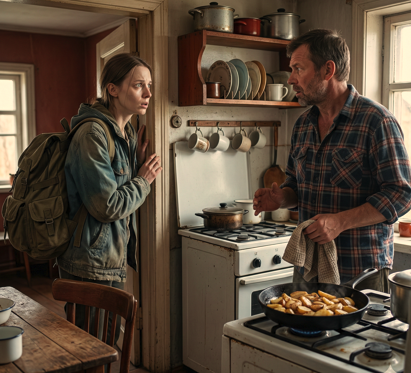 На вешалке, где раньше висели цветастые бабушкины платки, теперь покоилась тяжелая рабочая куртка. Из кухни, вытирая мокрые руки вафельным полотенцем, вышел высокий широкоплечий мужчина. На его лице темнела густая недельная щетина, а в светлых глазах мелькнуло крайнее удивление.