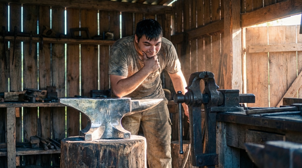Продавать сразу я не стал. Решил сначала довести до ума. Взял болгарку с кордщеткой, преобразователь ржавчины, банку хорошей краски. Три дня я эти железки вылизывал. Снял слои ржавчины и старого масла — а под ними металл живой, звонкий! Наковальню отполировал до блеска, тиски перебрал, смазал литолом — крутятся мягко, как по маслу.
