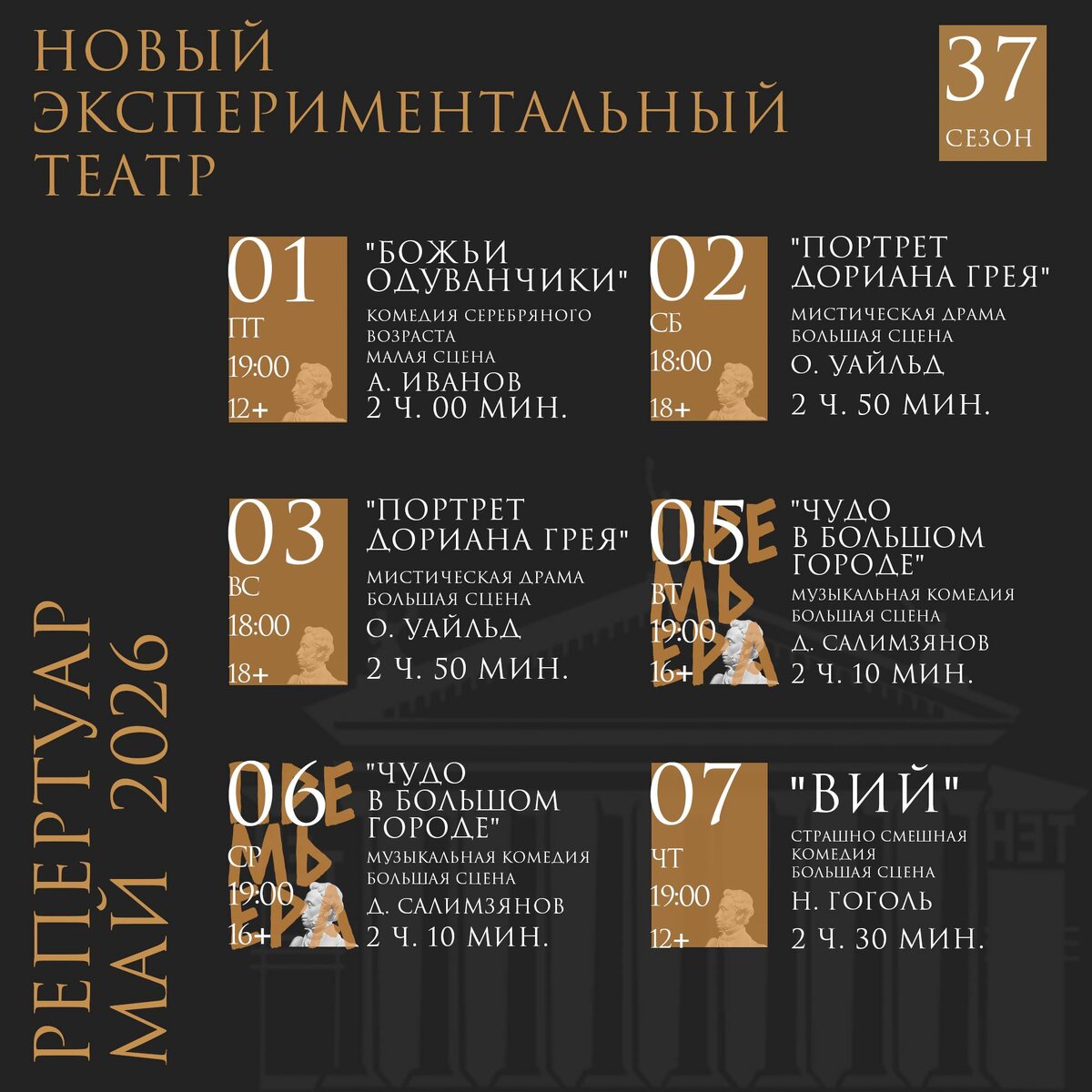 ! 1 марта, в 11.00, стартуют продажи билетов на спектакли НЭТа в мае. Он будет щедрым на события, гастроли и премьеры. На что обратить внимание? 10 мая на Малой сцене Михаил Гордеев представит читку-спектакль «Судьба человека» по Михаилу Шолохову. Эта премьера посвящается Дню Победы. 23 и 24 мая Екатерина Мелешникова и Вера Прибыловская приглашают посмотреть комедийную историю из жизни закулисья «Звездный час» по пьесе Николая Коляды. 29, 30 и 31 мая новую работу на Большой сцене представит главный режиссер театра Андрей Курицын. Это будет классическая комедия Александра Островского на вечно-актуальные темы «Волки и овцы». Гастроли С 19 по 21 мая на Большой сцене пройдут гастроли Саратовского театра драмы. Волгоградцы увидят чисто английский детектив «Свидетель обвинения», комедию «Мафия и нежные чувства» и фантастический рассказ «Кроткая». Последняя встреча 22 мая зрители в последний раз увидят спектакль «Миронов». Перед тем как снять его с репертуара, НЭТ решил устроить байопику