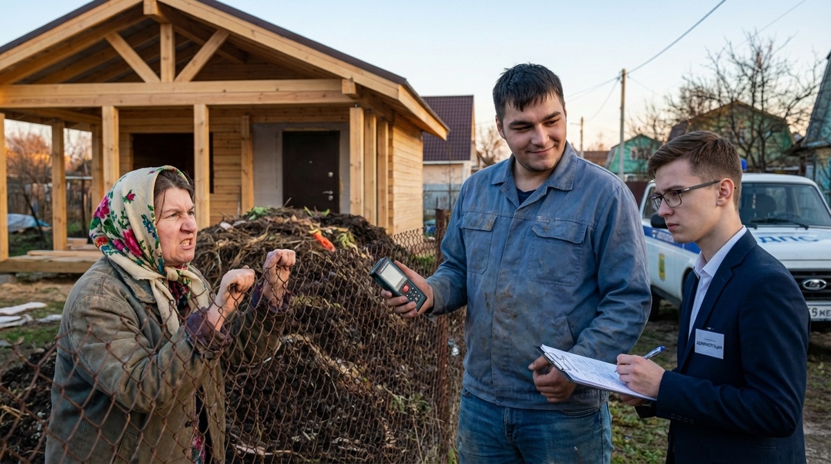 — Вот, смотрите, — показываю инспектору. — СНиП 30-02-97, пункт 6.7. От хозяйственной постройки до границы соседнего участка — не менее 1 метра. У меня нарушений нет.