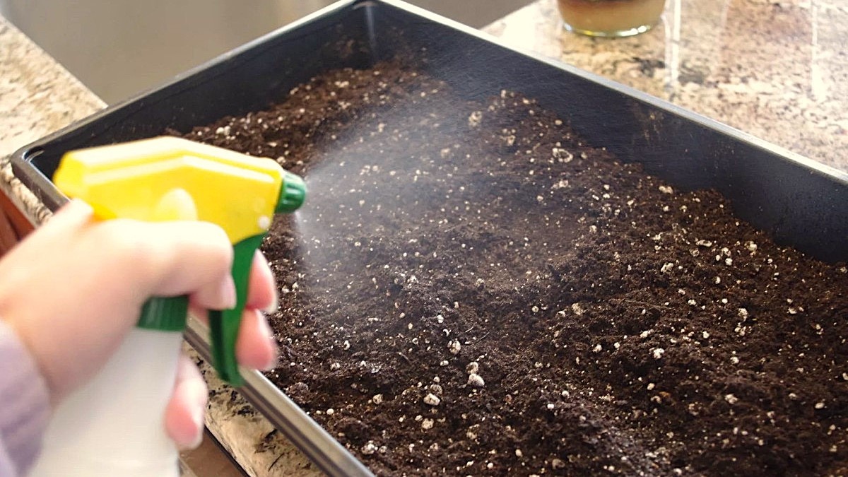 Если необходимо увлажнить поверхность после посева, пульверизатор — наименее травматичный вариант.