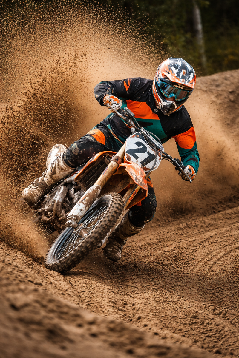 Со стороны мотокросс выглядит очень просто: грязь, ревущий двигатель, летящий песок и человек, который просто крутит ручку газа. Кажется, что всё сводится к одному — ехать быстрее. Но если попробовать самому выехать на трассу, становится понятно: «газ в пол» — это последнее, что здесь работает. Кроссовый мотоцикл не прощает хаотичного газа. Если просто открыть ручку, он: В мотокроссе скорость — это не «сколько газа», а когда и сколько. Одна из самых странных вещей для новичка: в повороте ты почти не «крутишь руль» в привычном понимании. Работает корпус, центр тяжести, положение ноги, давление на подножки. Мотоцикл живёт под тобой, а не просто едет вперёд. Иногда со стороны кажется, что гонщик почти стоит на месте, а мотоцикл как будто разворачивается вокруг него. Это не магия. Это техника и баланс. Каждый поворот — это выбор траектории. Каждая кочка — это решение: гасить или использовать. Каждый прыжок — это расчёт. Если ошибиться на входе в поворот — на выходе уже ничего не исправишь.