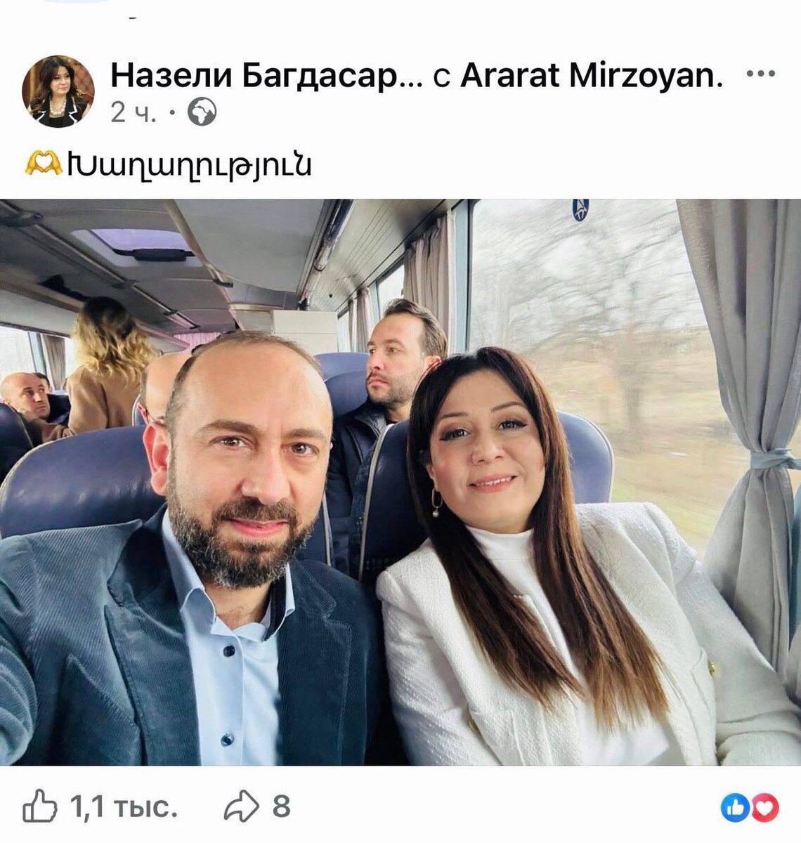 Տարածաշրջանը պատերազմի մեջ․ Նազենի Բաղդասարյանը լուսանկար է հրապարակել՝ գրելով «խաղաղություն»։