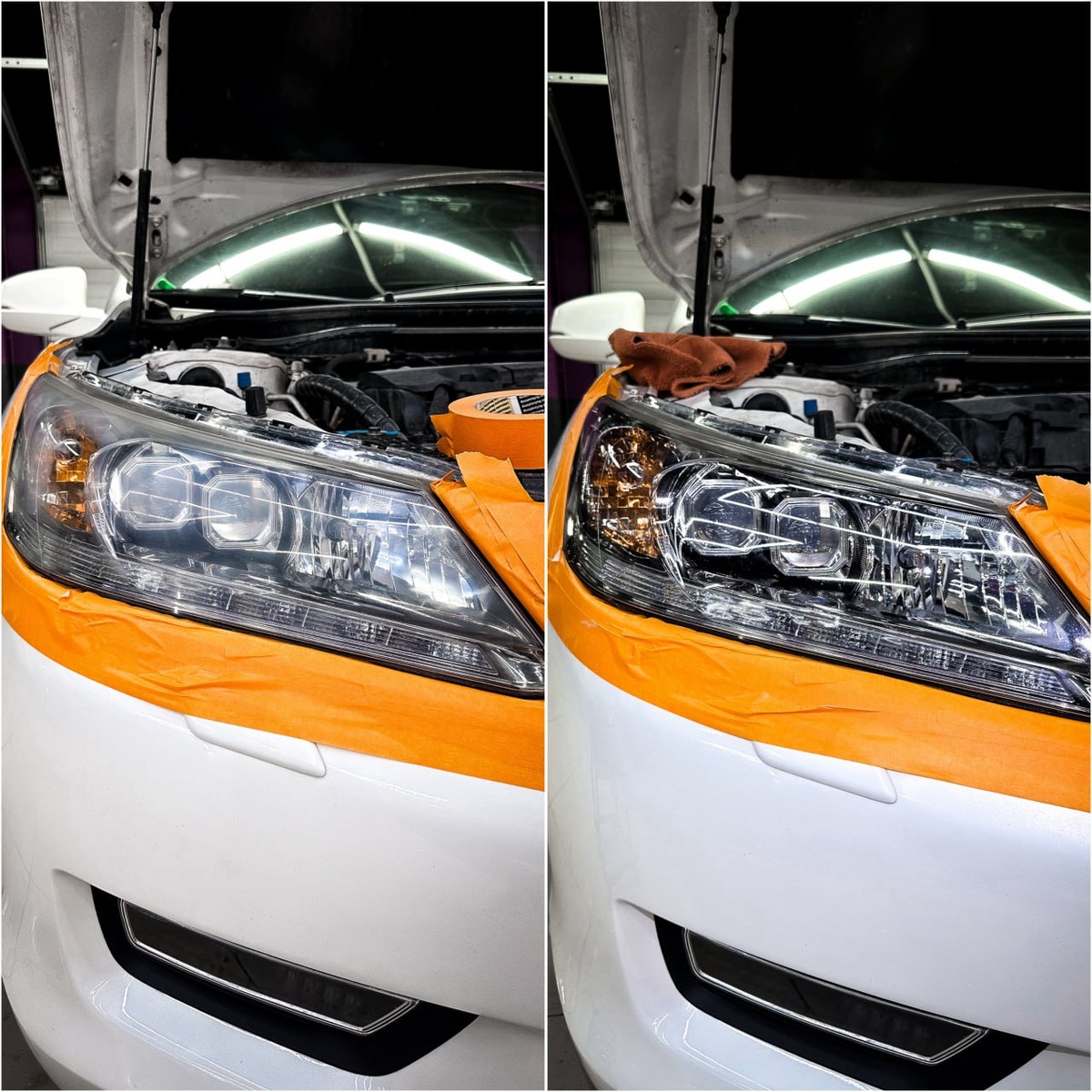 👀 Если мутные и поцарапанные — даже свежий кузов выглядит уставшим. Этот Honda Accord приехал именно с такой проблемой. Что сделали: ▪️отполировали фары до прозрачности ▪️ сразу оклеили защитной плёнкой Теперь свет ярче, внешний вид свежее, а новая прозрачность не исчезнет через пару месяцев 🔥 💡 Полезно знать: Полировка без защиты — временно. Полировка + плёнка — надолго. Хочешь, чтобы фары светили, а не «тускнели»? Заезжай — вернём взгляд твоему авто 👍 Наш телефон: ☎️+7(977)484-15-44 (доступен в Telegram, WhatsApp). Работаем ежедневно и по предварительной записи. #детейлинг5к5 #полировкафар #оклейкафар #детейлингмосква #уходзаавто #защитапленкой #detailing5k5 #hondaaccord #светавто