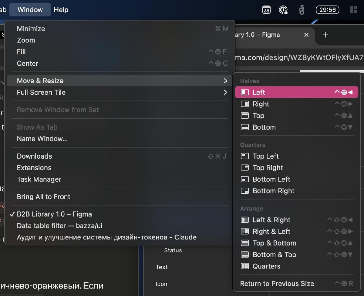 вы любите приложение Magnet для менеджента окон и запускаете фигму в браузере и горячие клавиши фигмы и Magnet постоянно спорят и из-за этого приходится добавлять браузер в исключения то можно менять расположение окон через нативные шорткаты хрома максимально нишевый совет