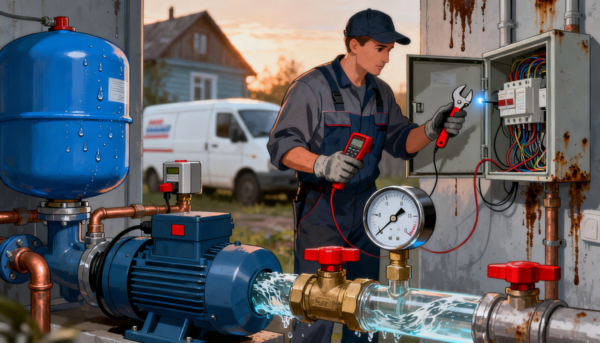 Если вода из крана идет рывками, насос включается каждые пять секунд или гудит, но не качает — это сигнал, что оборудование работает на износ. Часто проблема решается простой регулировкой или чисткой фильтров, но если затянуть, придется менять дорогостоящие узлы.
