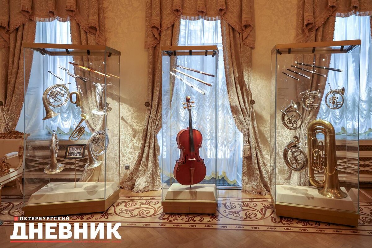 Посетители в завершающей части парадной анфилады смогут увидеть и миниатюрные трубы длиной около 15 сантиметров, и крупные инструменты высотой до 6 метров. Многие из них ранее находились в фондовом хранилище и впервые представлены в обновлённом выставочном пространстве после реставрации. По словам директора музея Натальи Метелицы, работа над созданием экспозиции заняла несколько лет. «С 2021 года мы проводили реэкспозицию коллекции музыкальных инструментов, чтобы представить её максимально точно, красиво и содержательно», – отметила она. Новые залы знакомят посетителей с инструментами, на которых играли российские императоры. Известно, что музыкальному образованию в царской семье уделялось большое внимание. Пётр III считался виртуозным скрипачом, Александр I собирал коллекцию флейт, Александр III увлекался духовыми инструментами, а Николай II играл на виолончели. Некоторые из этих инструментов сегодня можно увидеть в экспозиции. Особое место занимает собрание инструментов для роговых о