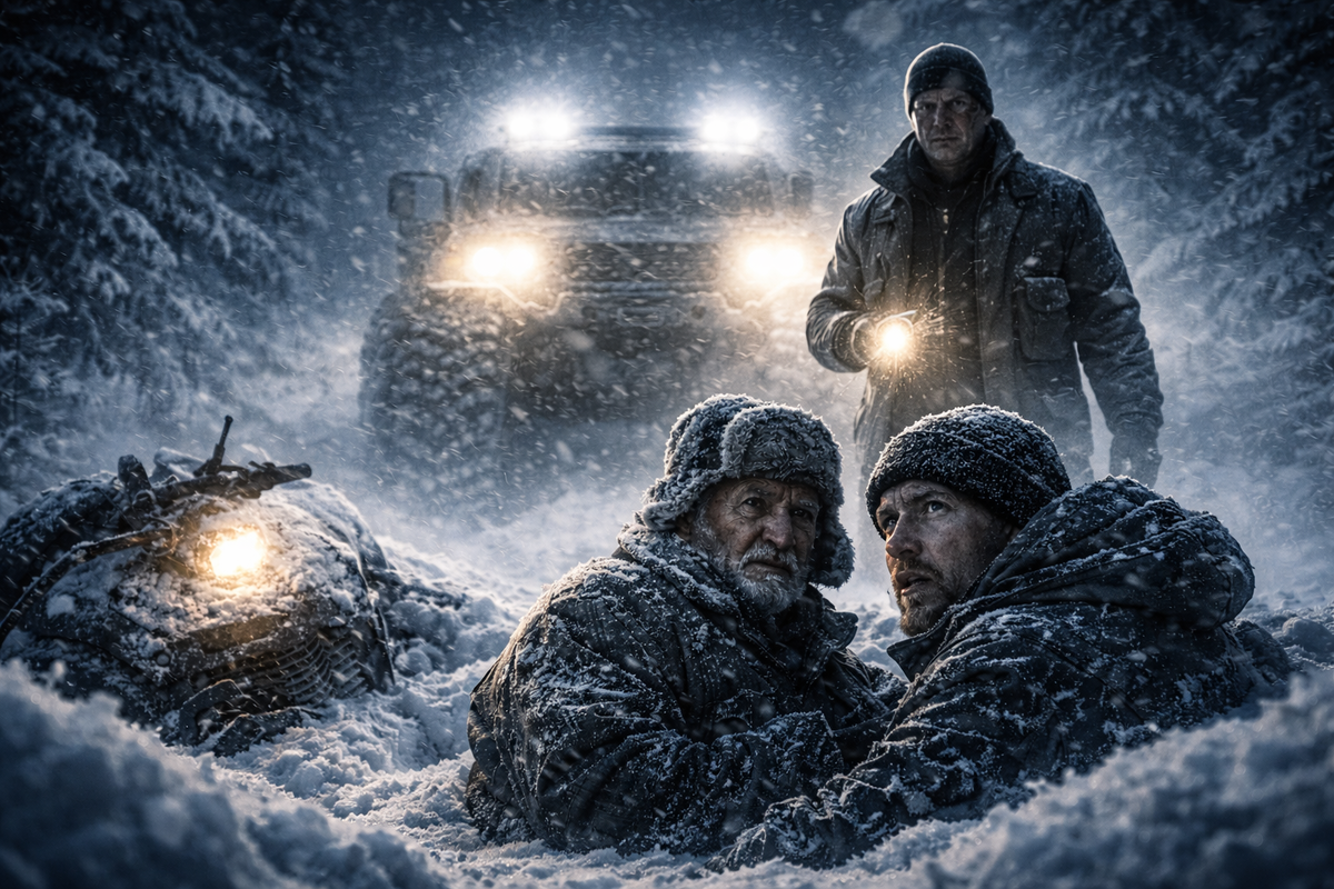 Без шапки. В тонком городском пальто, не рассчитанном на минус сорок. Слишком аккуратный для этой тайги. Слишком спокойный для человека, который только что догнал нас посреди метели.