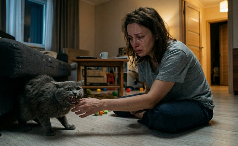 Дети пытались носить Мусю на руках к мискам, но стоило им оторвать ее лапы от пола, как кошка впадала в слепую панику. Она извивалась, дико кричала, выпуская когти, и вслепую падала на скользкий паркет. Юля ходила за ней по пятам, громко хлопая в ладоши, чтобы «задавать направление», отчего Муся в ужасе шарахалась и снова врезалась в мебель.